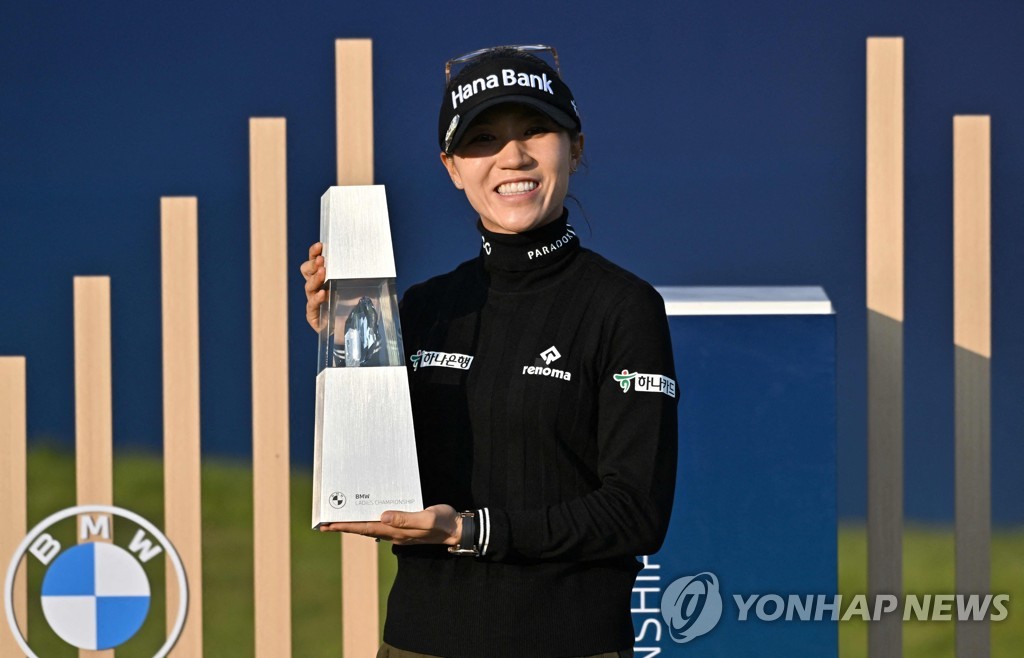| ▲  In this AFP photo, Lydia Ko of New Zealand poses with the champion's trophy after winning the BMW Ladies Championship on the LPGA Tour at Oak Valley Country Club in Wonju, Gangwon Province, on Oct. 23, 2022. (Yonhap) |