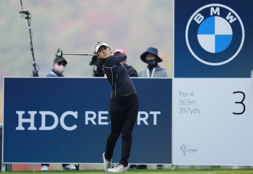 | ▲  Choi Hye-jin of South Korea tees off on the 12th hole during the final round of the BMW Ladies Championship on the LPGA Tour at Oak Valley Country Club in Wonju, Gangwon Province, on Oct. 23, 2022, in this photo provided by BMW Korea. (PHOTO NOT FOR SALE) (Yonhap) |