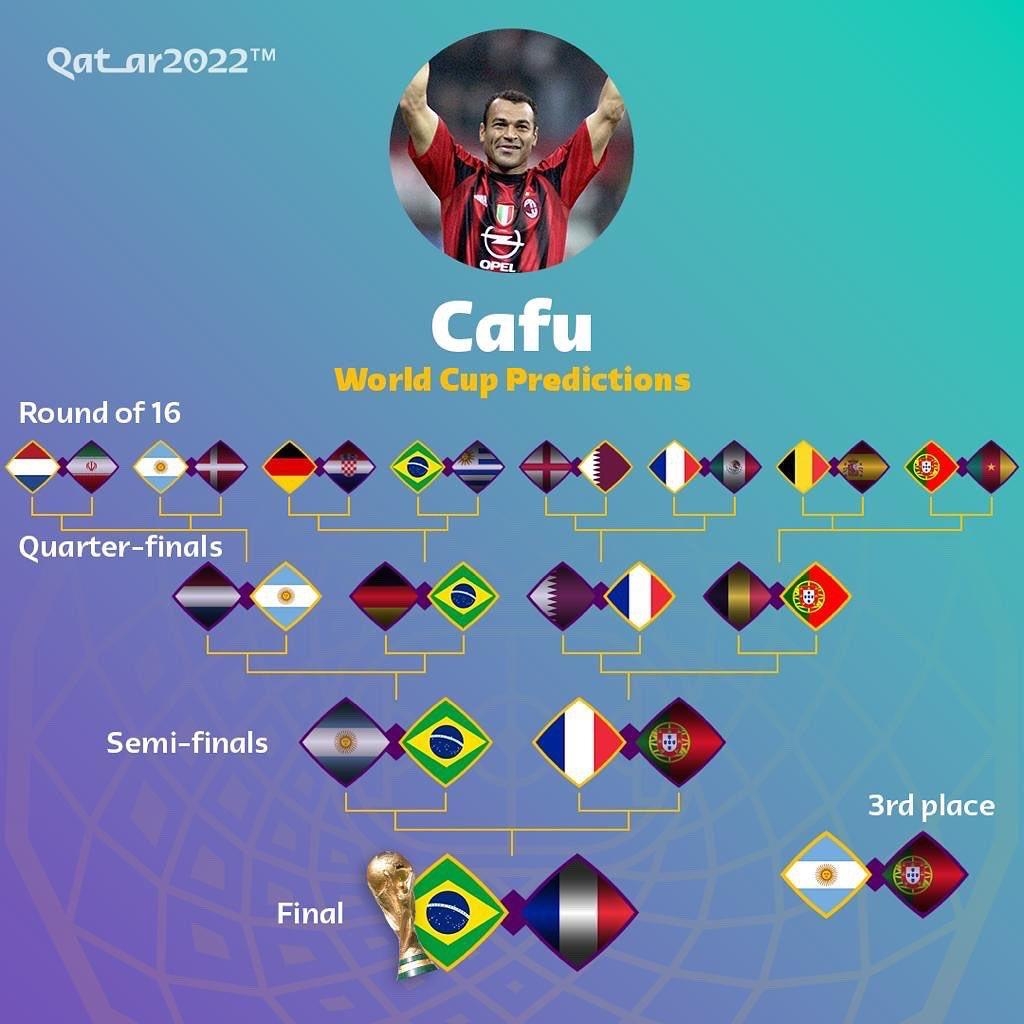 카푸의 전망을 보면 G조 1위 브라질은 16강에서 H조 2위 우루과이를 꺾고 8강에 올라 독일을 누른 뒤 4강에서 남미 대륙 맞수 아르헨티나를 제압한다. 그러고나서 결승에서 '디펜딩 챔피언' 프랑스를 물리치고 통산 여섯 번째 우승 트로피를 들어 올린다.