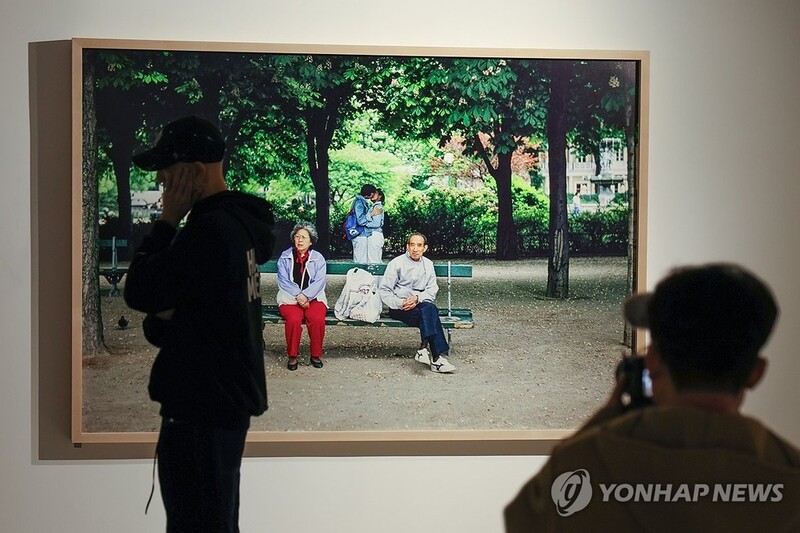 ▲ Park Yong-maan's photography exhibition, "Human Moment," on Jan. 15, 2026, at piknic, downtown Seoul. (Yonhap)