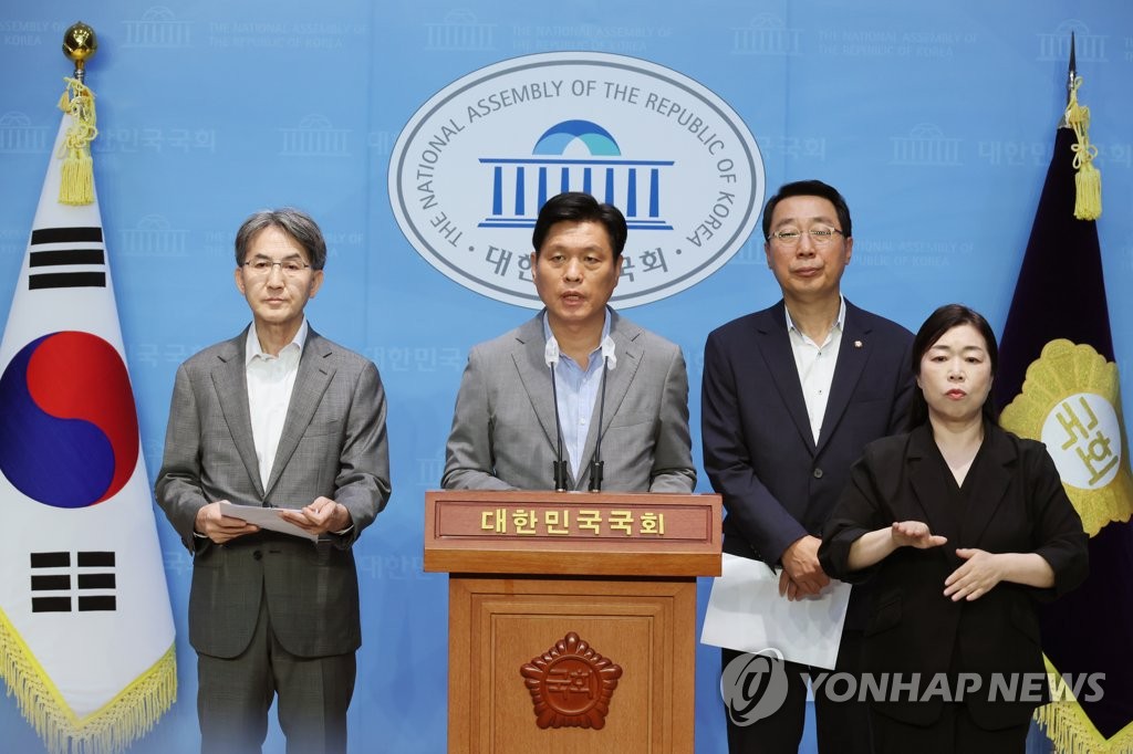 박 의원 등은 "민주당이 우주항공청 관련 예산, 조직, 인력 구성 등 법안 통과 이후 부처 간 협의가 필요한 자료를 요구하며 회의 개최를 막아섰다"며 "이동관 대통령실 특보를 방통위원장으로 지명하지 않으면 파행을 해결할 수 있다는 협박까지 했다"고 주장했다.