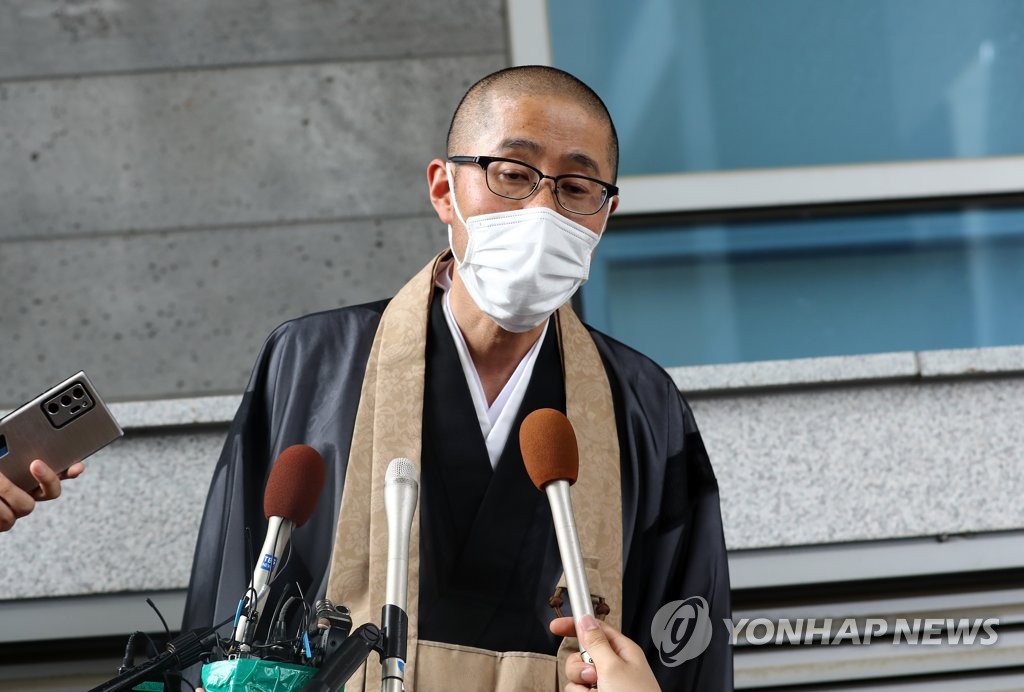| ▲ 질문에 답하는 다나카 주지 지난 6월 15일 대전고법에서 열린 고려시대 금동관음보살좌상 소유권 재판에 참석한 일본 간논지의 다나카 세쓰료 주지가 취재진 질문에 답하는 모습 [연합뉴스 자료사진] |