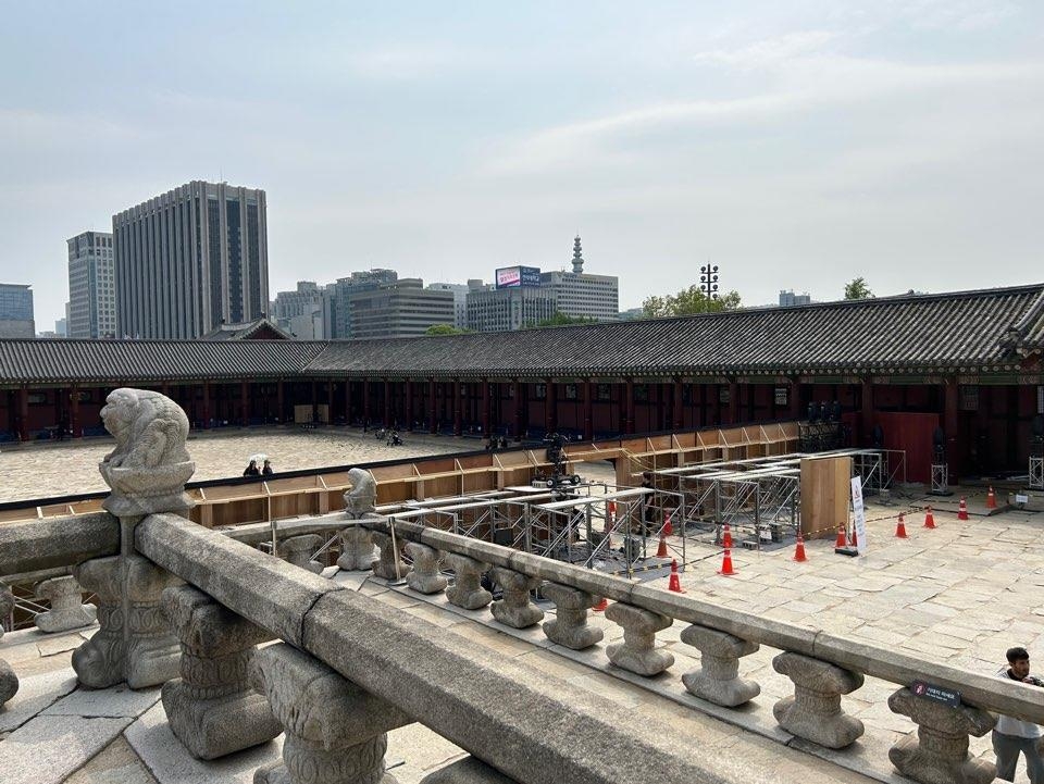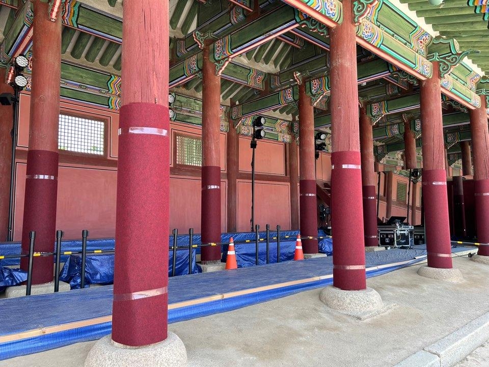 실제로 전날 오후 찾은 근정전 일대에는 무대 시설을 설치하느라 분주한 모습이었다. 근정전에서 경회루로 이어지는 곳곳에는 '행사 준비 중'이라고 적힌 안내판이 놓여 있었다.