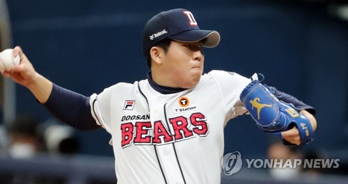 | ▲ 역투하는 두산 선발 김민규 (서울=연합뉴스) 최재구 기자 = 21일 오후 서울 구로구 고척스카이돔에서 열린 2020 프로야구 포스트시즌 한국시리즈(KS) 4차전 NC 다이노스와 두산 베어스의 경기. 두산 선발투수 김민규가 역투하고 있다. 2020.11.21 jjaeck9@yna.co.kr |