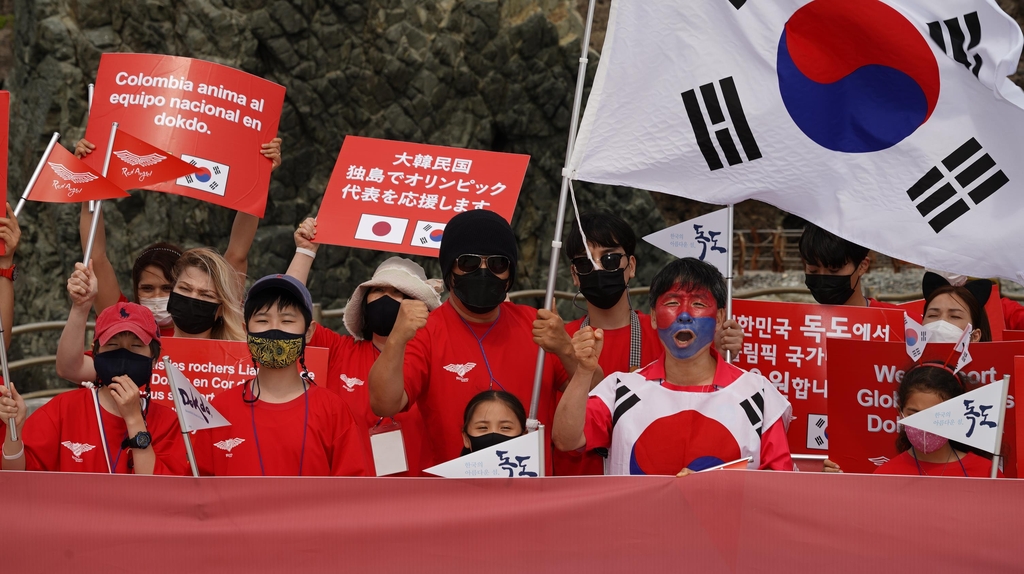 "도쿄올림픽지도 독도 표기 항의"…레드엔젤 응원단 국가대표 선전 기원