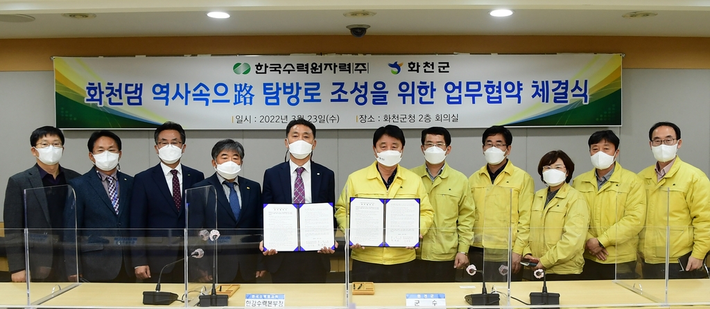 이를 위해 화천군과 한국수력원자력(이하 한수원)은 23일 군청에서 '화천댐 역사 속으로(路) 탐방로' 조성을 위한 업무 협약식을 했다.