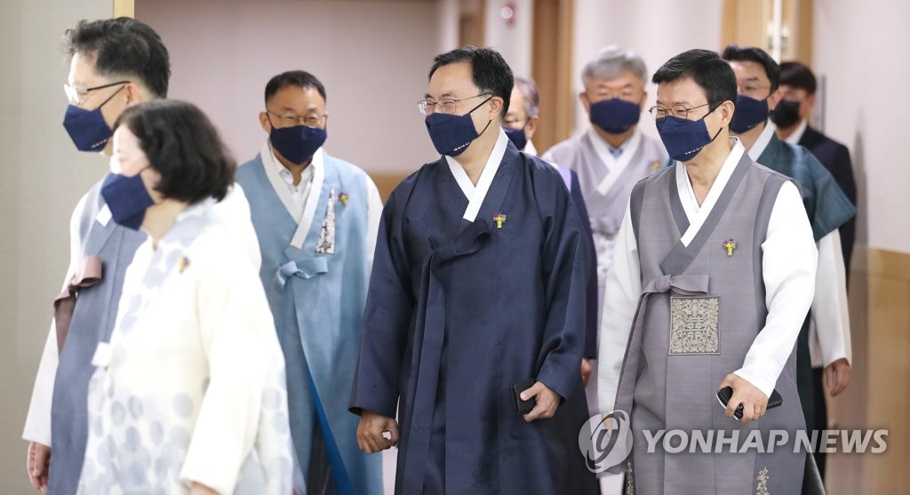 (서울=연합뉴스) 이은정 기자 = 대통령을 비롯한 국무회의 참석자들이 한복을 착용하고 회의를 열자 한복 관련 단체들이 한목소리로 환영했다.