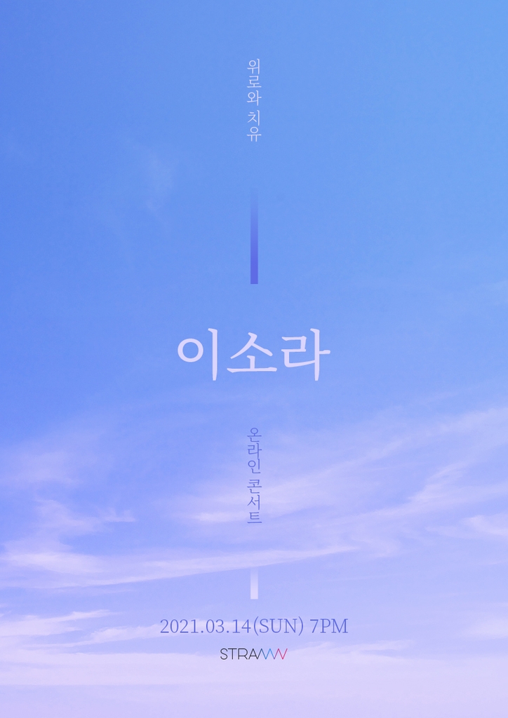 26일 소속사 에르타알레 엔터테인먼트에 따르면 이소라는 다음 달 14일 오후 7시 온라인 공연 플랫폼 스트로(STRAW)에서 60분간 '스트로 뮤직 위드(STRAW MUSIC WITH) 이소라' 콘서트를 진행한다.