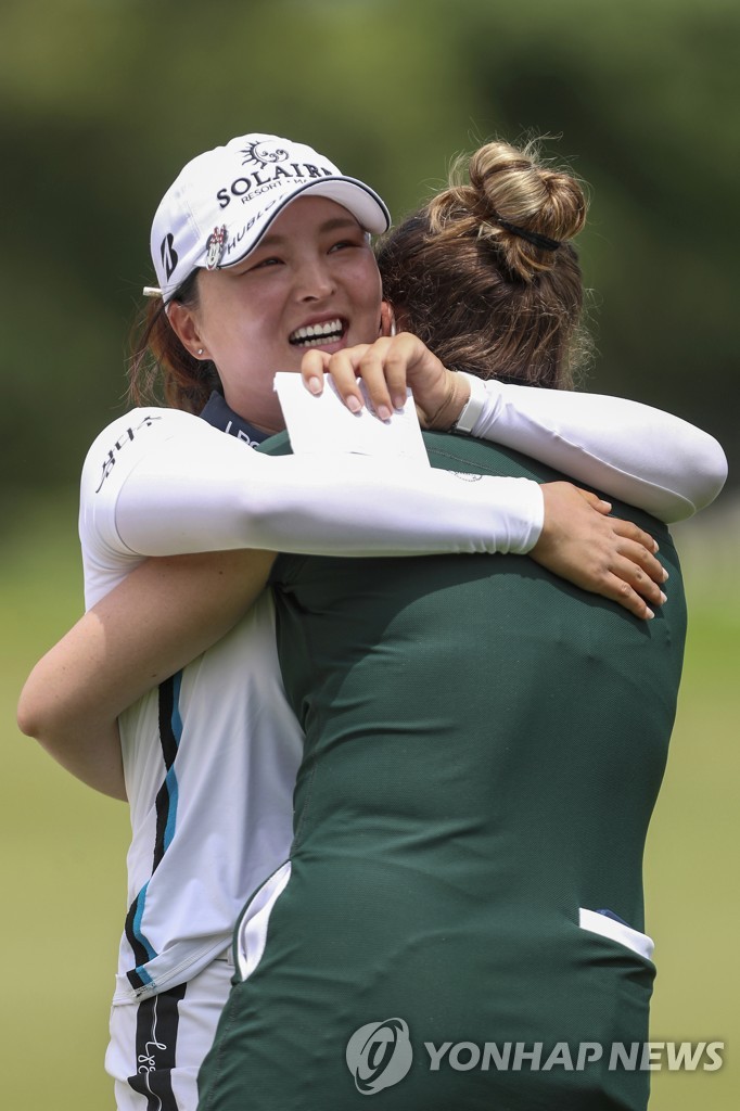 | ▲ 우승 확정 후 로페스와 포옹하는 고진영. [AP=연합뉴스] |