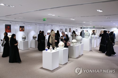 | ▲ 도예가 지산 이종능 작가, 아랍에미리트에서 전시회 열어 (서울=연합뉴스) 도예가 지산 이종능 작가의 전시회가 27일(현지시간) 아랍에미리트 아부다비 주아랍에미리트 한국문화원에서 진행되고 있다. [이종능 작가 제공. 재판매 및 DB 금지] photo@yna.co.kr |