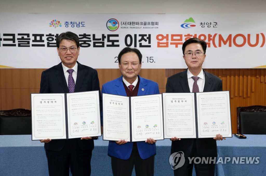 도는 15일 청양군, 대한파크골프협회와 '대한파크골프협회 충남도 이전 업무협약'을 체결했다.