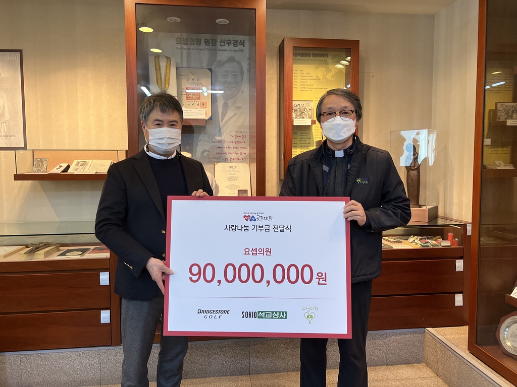 (서울=연합뉴스) 김동찬 기자 = 석교상사가 제15회 사랑나눔 골프대회에서 모금한 후원금을 성가복지병원과 요셉의원에 전달했다고 1일 밝혔다.