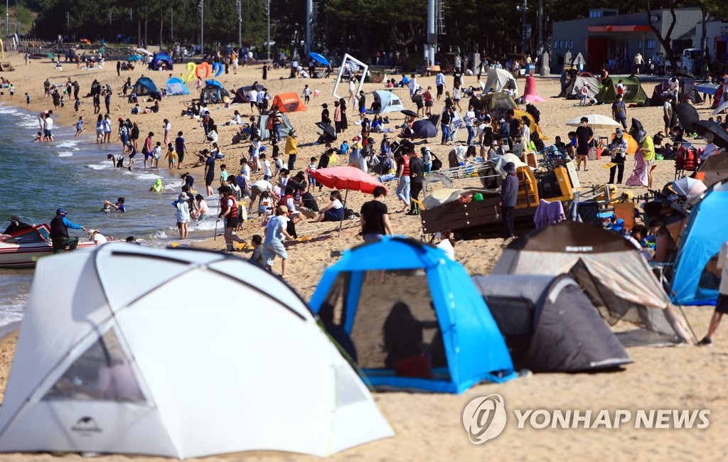 행락객들은 백사장에 텐트를 치고 때 이른 물놀이를 즐기거나 모터보트를 타면서 석탄일 휴일을 만끽했다.