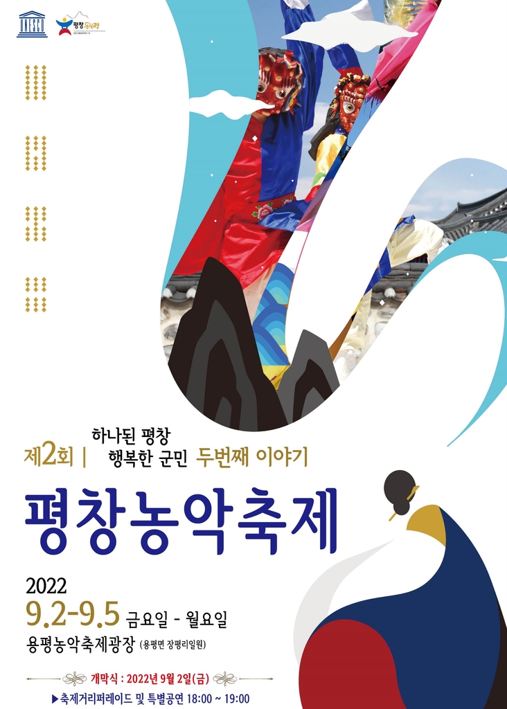 (평창=연합뉴스) 이재현 기자 = '하나 된 평창 행복한 군민 두 번째 이야기'를 주제로 한 제2회 평창농악축제가 9월 2∼5일 나흘간 용평면 장평리 일원에서 개최된다.
