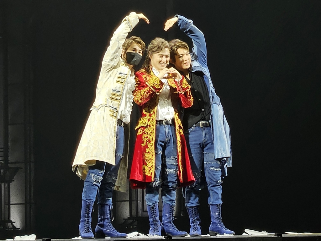 | ▲ '모차르트!' 주연 김희재(왼쪽부터), 수호, 유회승 (서울=연합뉴스) 최주성 기자 = 20일 오후 서울 종로구 세종문화회관 대극장에서 열린 뮤지컬 '모차르트!' 프레스콜에서 출연진이 취재진을 향해 포즈를 취하고 있다. 2023.6.20 cjs@yna.co.kr |