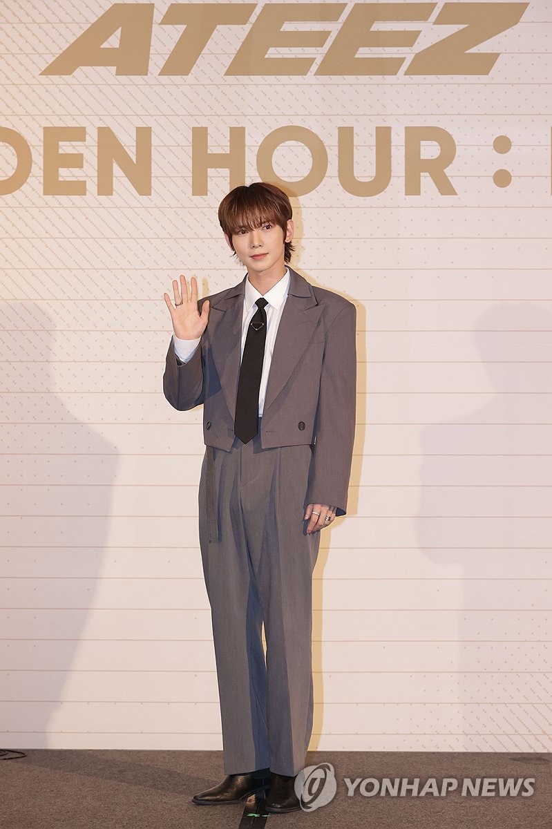 | ▲ 성화 '앙증맞게' (서울=연합뉴스) 강민지 기자 = 그룹 에이티즈 성화가 30일 오후 서울 종로구 포시즌스호텔에서 열린 미니 10집 '골든 아워 : 파트 1'(GOLDEN HOUR : Part.1) 발매 기념 기자간담회에서 포즈를 취하고 있다. 2024.5.30 mjkang@yna.co.kr |