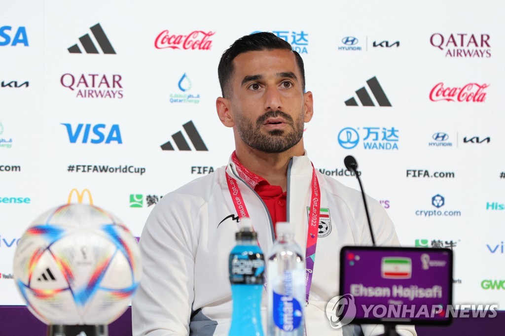 (서울=연합뉴스) 이의진 기자 = 2022 카타르 월드컵 조별리그 B조 잉글랜드와 일전을 앞둔 이란 축구 대표팀의 주장 에산 하즈사피가 공개석상에서 "우리나라가 처한 여건이 바람직한 건 아니다"라고 꼬집었다.