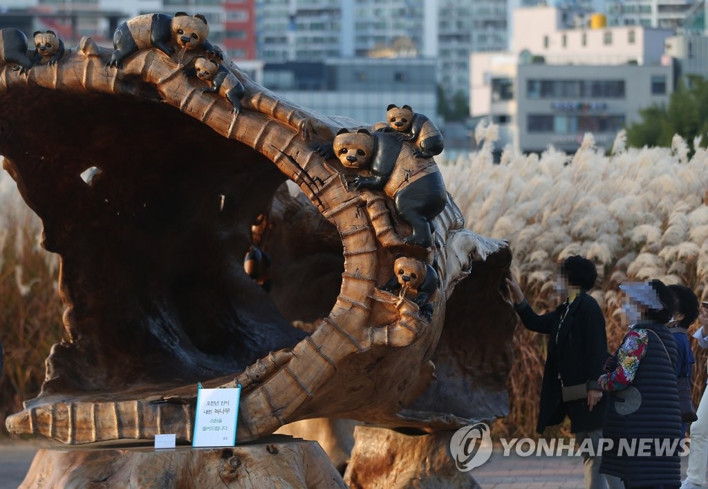 | ▲ 지난 2일 오후 울산시 중구 태화강 국가정원에서 열린 '2021 대한민국 정원산업박람회'에서 시민들이 5천년 수령 녹나무로 제작된 전시물을 감상하고 있다. [연합뉴스 자료사진] |