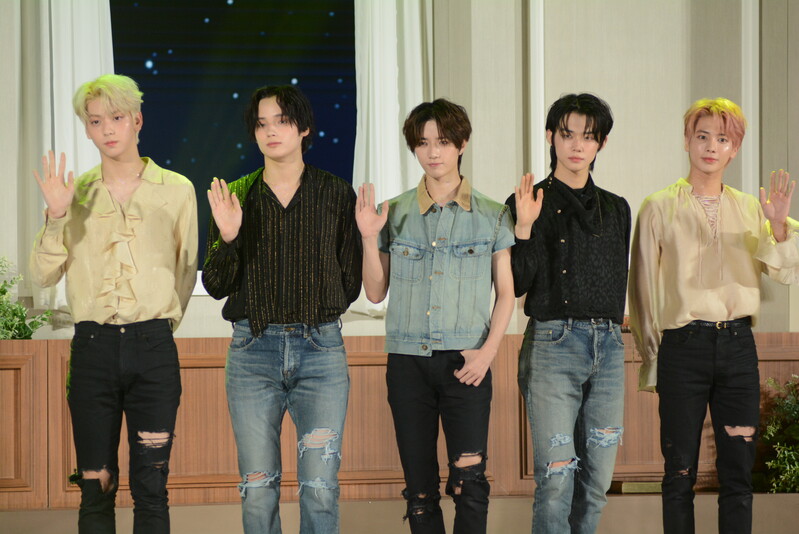 | ▲This photo taken during the media showcase of TxT's fifth mini album 'Temptation' show group's members. (PHOTO NOT FOR SALE) (Yonhap) |