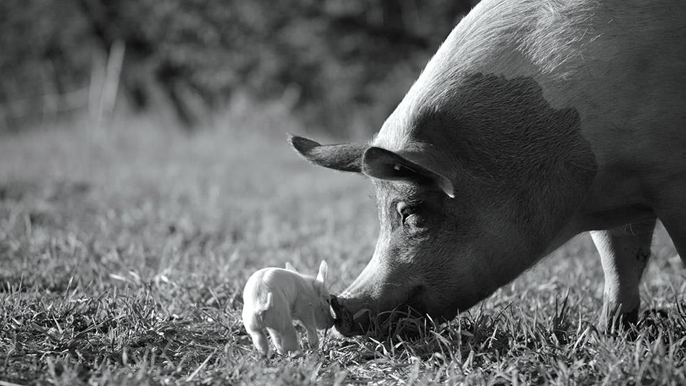 오늘날 도시생활을 하는 사람들은 살아있는 돼지를 평생 한 번도 보지 못하는 경우가 많다. 분홍빛 귀여움으로 포장된 애니메이션 캐릭터 정도가 대부분일 것이다. 다큐 속 새끼돼지들은 그늘진 우리 안에서 옹기종기 모여 사력을 다해 젖을 빤다.