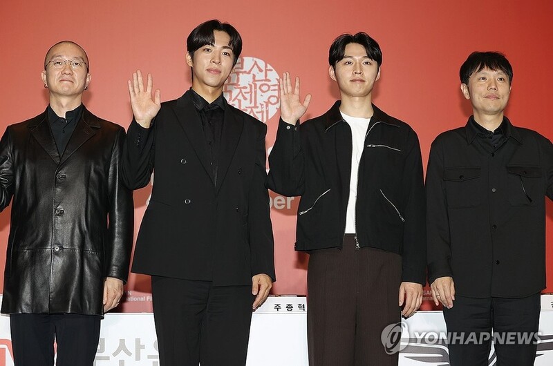 | ▲ 부산국제영화제 개막작 기자회견 (부산=연합뉴스) 이재희 기자 = 4일 오후 부산 해운대구 영화의전당 중극장에서 열린 부산국제영화제(BIFF) 개막작 '한국이 싫어서' 기자회견에서 윤희영 프로듀서(왼쪽부터), 배우 주종혁, 배우 김우겸, 장건재 감독이 포즈를 취하고 있다. 2023.10.4 scape@yna.co.kr |