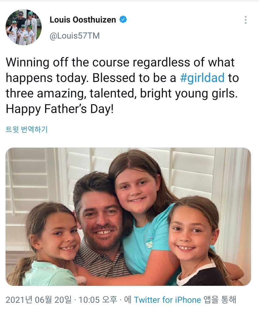 우스트히즌은 최종 라운드를 시작하기 전 소셜 미디어에 세 딸과 함께 찍은 사진을 올리며 "오늘 경기장에서 무슨 일이 일어나더라도 코스 밖에서는 내가 승자"라며 "재능있고 밝고 엄청난 세 딸의 아빠여서 행복한 아버지의 날"이라는 글을 적었다.