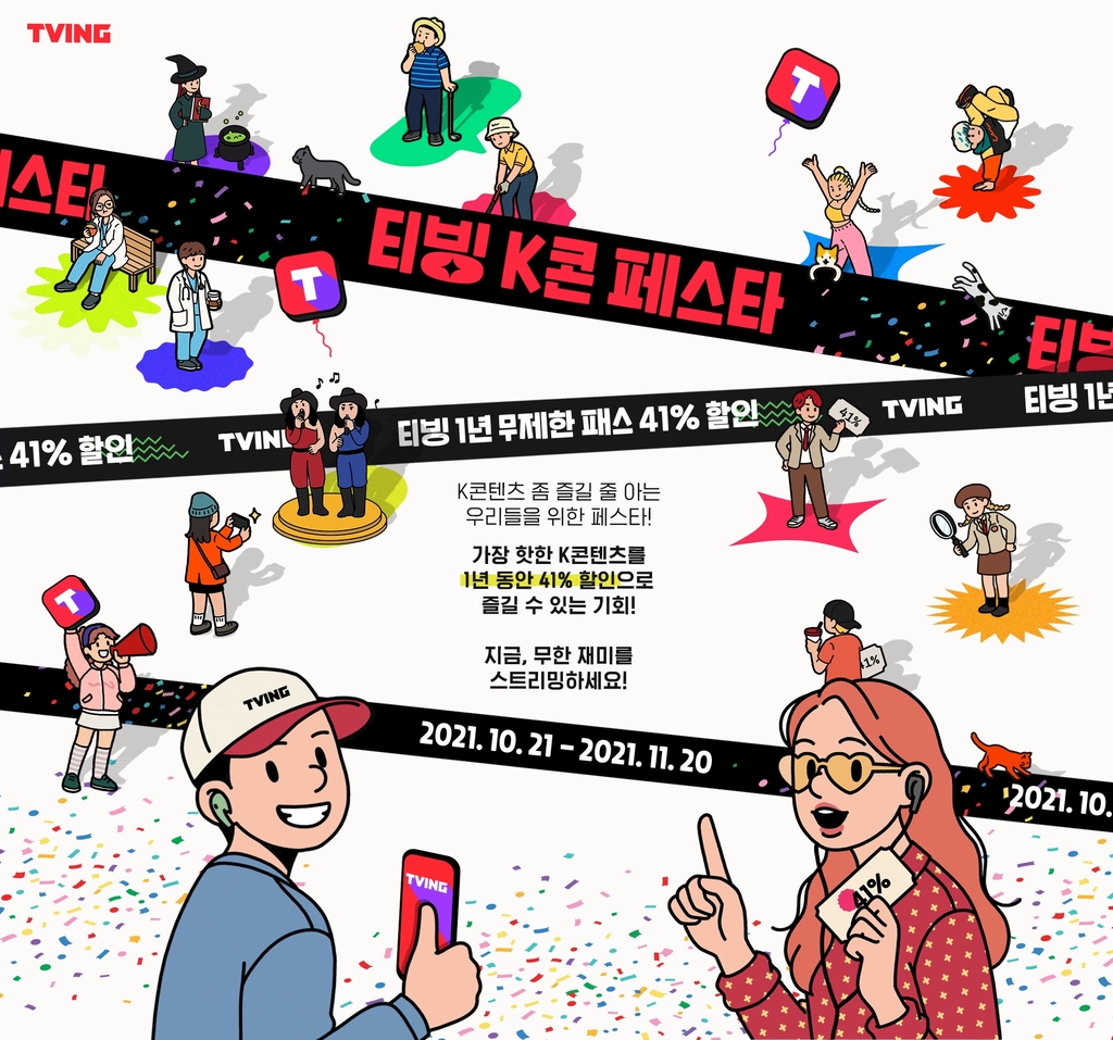 ▲ 티빙 독립 출범 1주년 기념 이벤트 = 국내 온라인 동영상 서비스(OTT) 플랫폼 티빙이 독립 출범 1주년을 맞아 내달 20일까지 '티빙 K콘 페스타' 이벤트를 진행한다.
