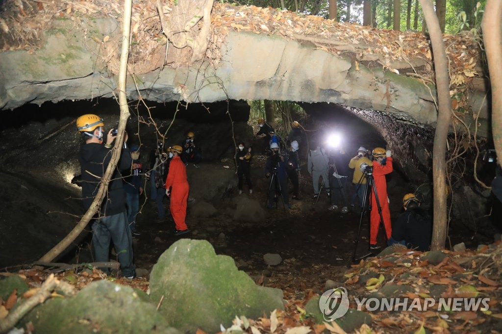 제주지역 언론사 취재진은 4일 오전 제주시 조천읍에 있는 유네스코 세계자연유산 '제주 화산섬과 용암동굴'의 핵심 굴 중 하나인 벵뒤굴을 찾았다.
