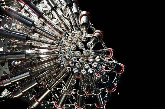 '백 개의 눈을 가진 거인-부풀은 태양들'은 우주 입자가 지구 대기권에 충돌할 때 생성되는 뮤온 입자를 실시간 검출하고, 그 신호를 다른 키네틱 작품에 보냄으로써 움직임을 촉발한다.