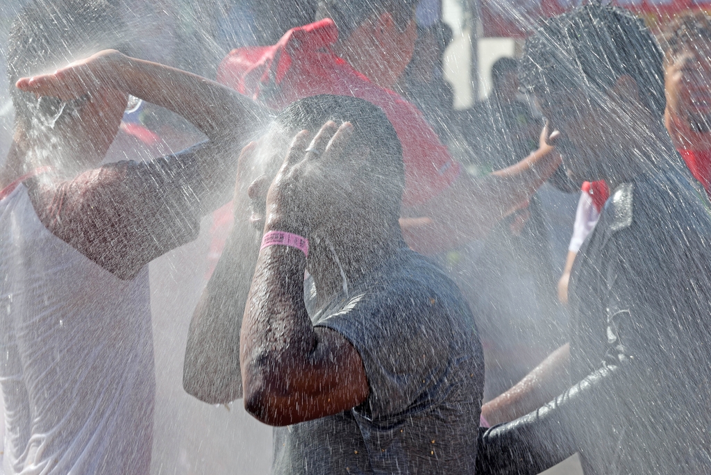 폭염의 날씨에 행사장 주변에는 분무 시설이 설치됐고, 살수차가 동원돼 축제장에 물을 뿌렸다.