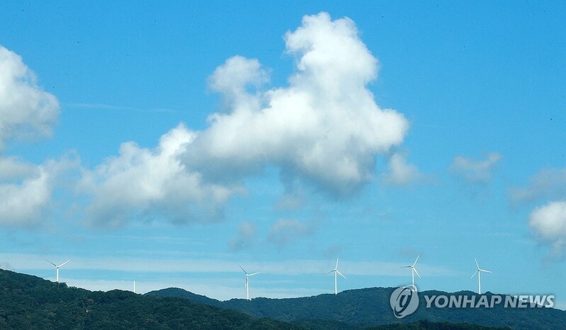 | ▲ 풍력발전기 늘어선 태기산의 가을 하늘 [촬영 이재현] |