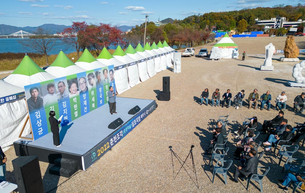 (춘천=연합뉴스) 이상학 기자 = 강원도 춘천에서 작가들이 21일간 현장에서 직접 만든 '2022 춘천조각 공공미술 심포지엄'이 25일 오후 폐막했다.