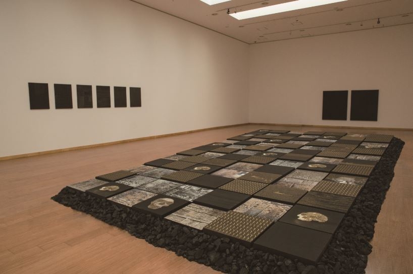 강진 출신인 작가는 태자리인 월남사지 터가 발굴의 현장이 된 모습에서 영감을 받아 금, 은, 흙, 석탄, 흑연 등 광물을 이용해 지층을 표현하고 창세기, 금강경 등을 기록한 '지층의 시간'을 선보인다.