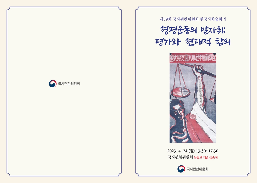 국사편찬위원회는 이달 24일 위원회 국제회의실에서 '형평운동의 발자취: 평가와 현대적 함의'를 주제로 한 제59회 한국사학술회의를 개최한다고 17일 밝혔다.