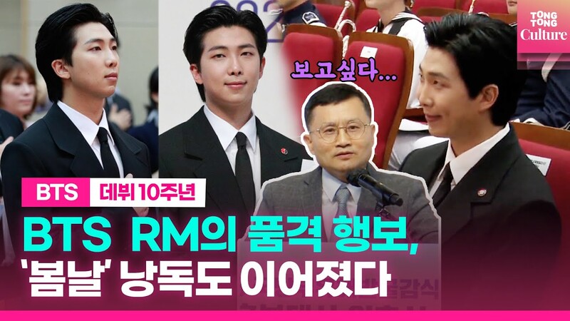 This video shows, the ceremony of' BTS' RM getting appointed as honorary ambassador for ministry's war remains excavation agency.
