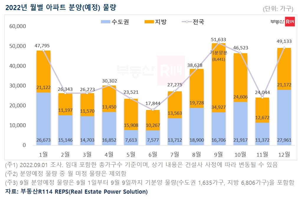 | ▲ 2022년 월별 아파트 분양(예정) 물량 [부동산R114 제공] |