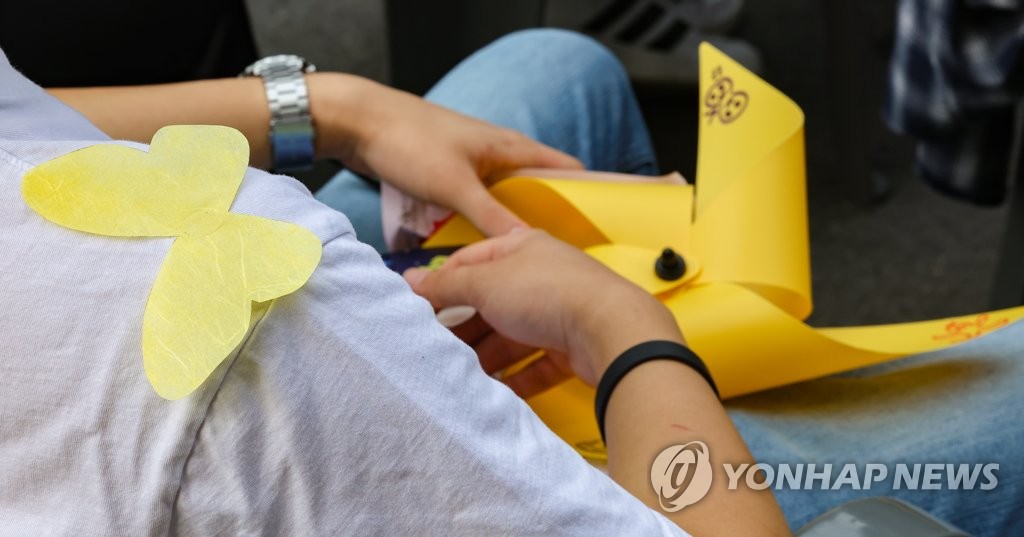 | ▲ 바람을 머금은 나비 (서울=연합뉴스) 서대연 기자 = 13일 오후 서울 중구 청계광장에서 열린 제11차 세계 일본군 '위안부' 기림일 나비문화제에서 한 참가자의 어깨에 종이나비가 붙여져 있다. 2023.8.13 dwise@yna.co.kr |
