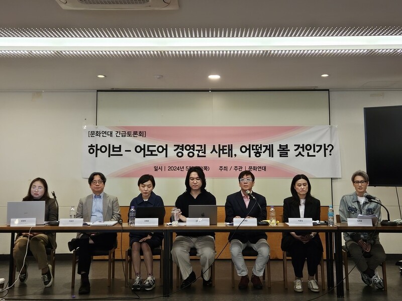 이동연 문화연대 공동대표는 2일 서울 중구 프란치스코교육회관에서 '하이브-어도어 경영권 분쟁, 어떻게 볼 것인가'를 주제로 열린 토론회에서 "이번 분쟁 사태를 초래한 문제점은 레이블이 하이브라는 경영지배구조 안에서 수직계열화되어 있다는 점, 콘텐츠의 배타적 독립성 유지 때문에 각 레이블의 협업이 부재하다는 점"이라고 지적했다.