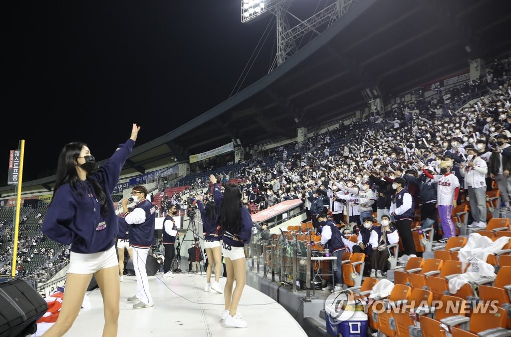 SEOUL, Nov. 2 (Yonhap) -- National health authorities on Tuesday called on baseball fans to refrain from chanting at stadiums, pointing to risks of spreading COVID-19 even among masked individuals.