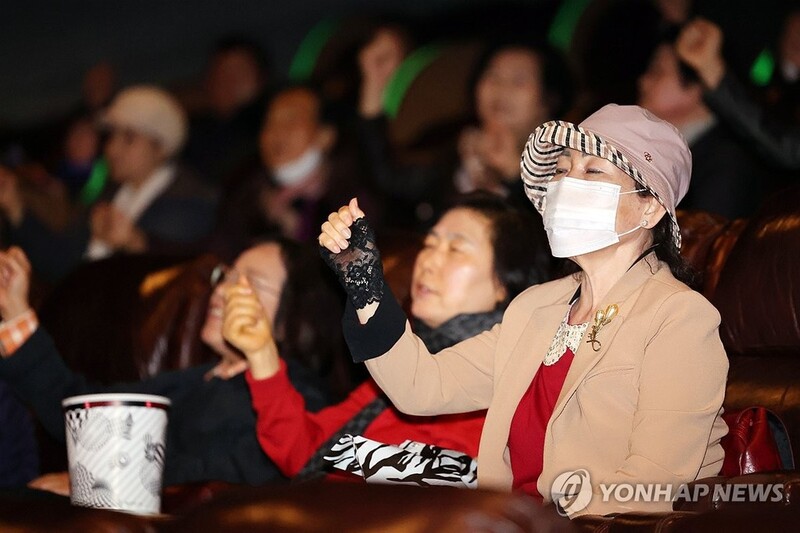 | ▲ '1980년 5월을 떠올리며' (광주=연합뉴스) 정다움 기자 = 27일 오후 광주 동구 한 영화관에서 오월단체 관계자들이 5·18 민주화운동을 다룬 영화 '1980'을 관람하기 전 '님을 위한 행진곡'을 부르고 있다. 2024.3.27 daum@yna.co.kr |
