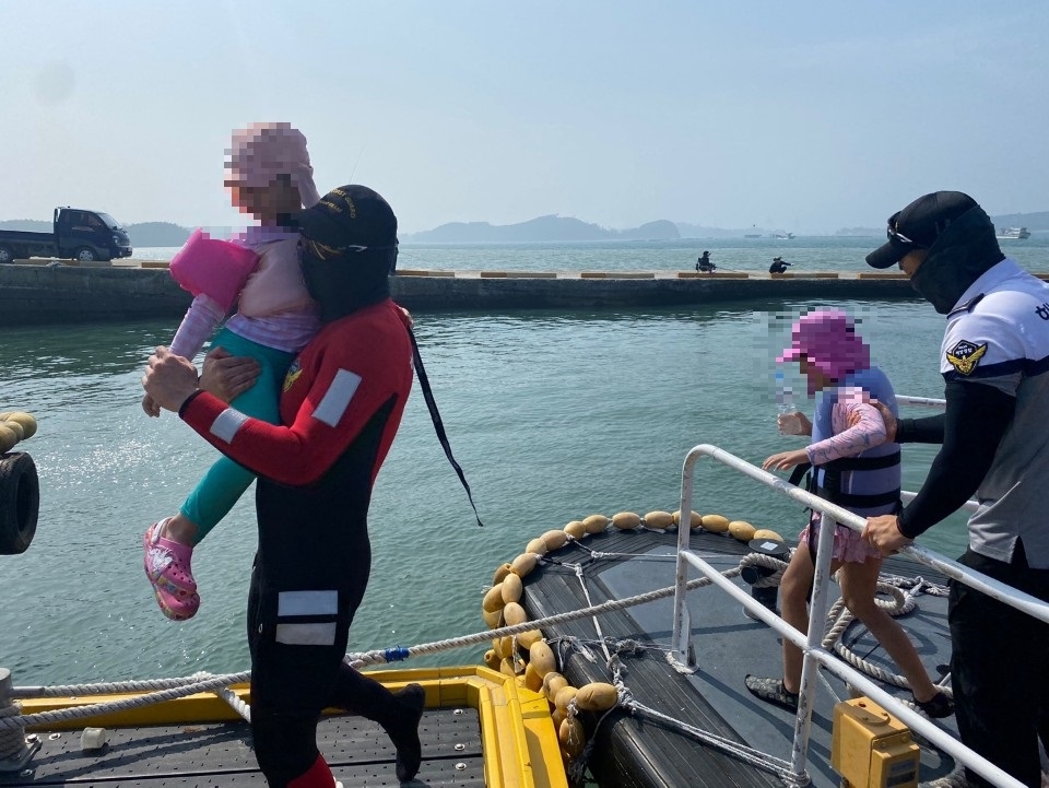 부모 신고를 받은 해경은 경비함정과 연안구조정 등을 급파하는 한편 인근 해상에서 조업 중이던 어선에도 협조를 요청, 15분 만에 아이들을 무사히 구조해 부모에게 인계했다.