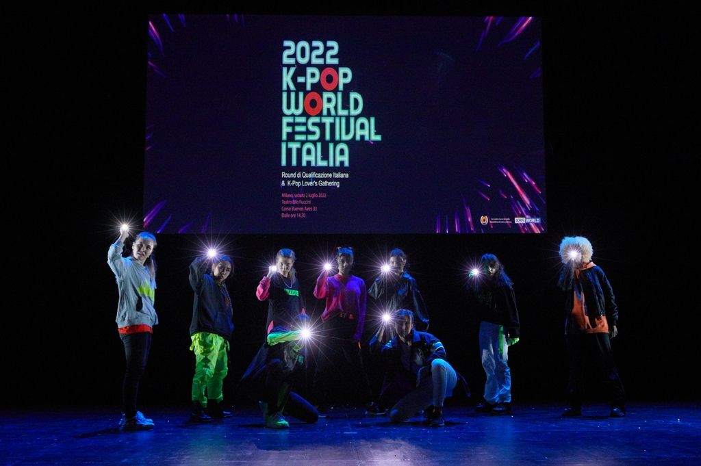 (로마=연합뉴스) 전성훈 특파원 = 주밀라노총영사관(총영사 강형식)은 지난 주말 밀라노 테아트로 엘포 푸치니 극장에서 '2022 케이팝(K-Pop) 월드 페스티벌 이탈리아'를 개최했다고 4일(현지시간) 밝혔다.