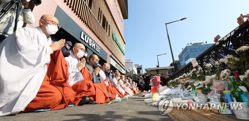 (서울=연합뉴스) 양정우 기자 = 종교계가 연이틀 '이태원 참사' 희생자 추모행렬에 동참했다.