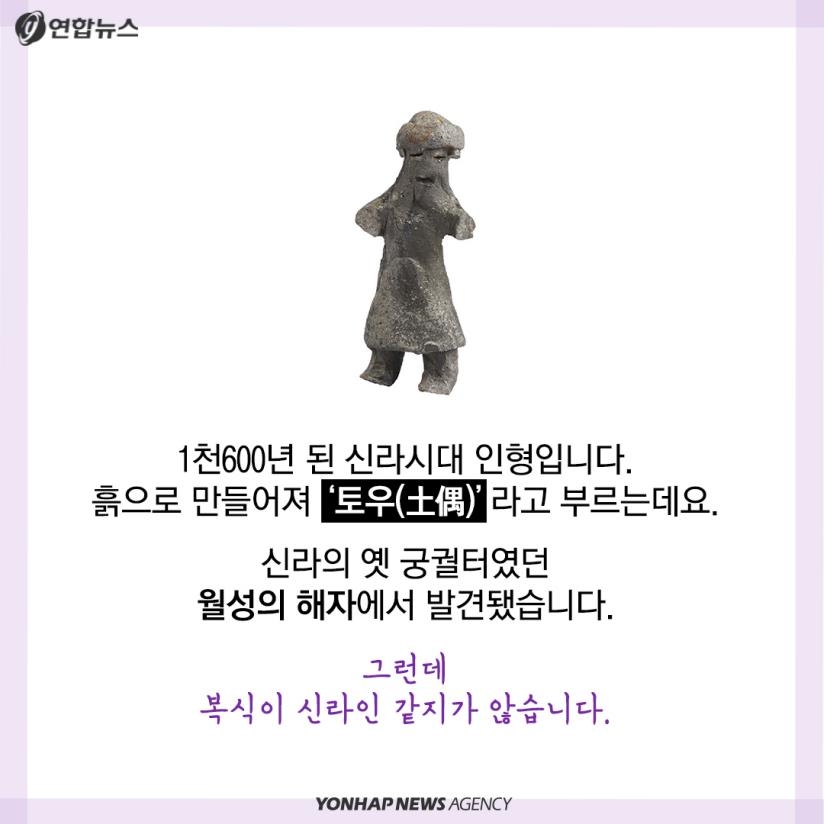 1천600년 된 신라 시대 인형입니다. 흙으로 만들어 '토우(土偶)'라고 부르는데요.
