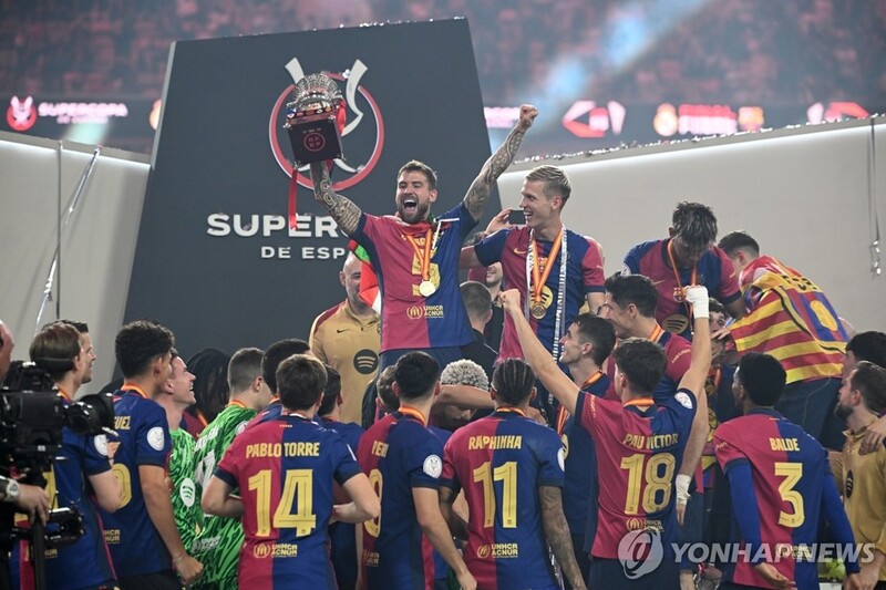 (서울=연합뉴스) 최송아 기자 = 스페인 프로축구 FC바르셀로나가 라이벌 레알 마드리드와의 맞대결을 승리로 장식하며 스페인 슈퍼컵(수페르코파 데 에스파냐) 정상에 올랐다.