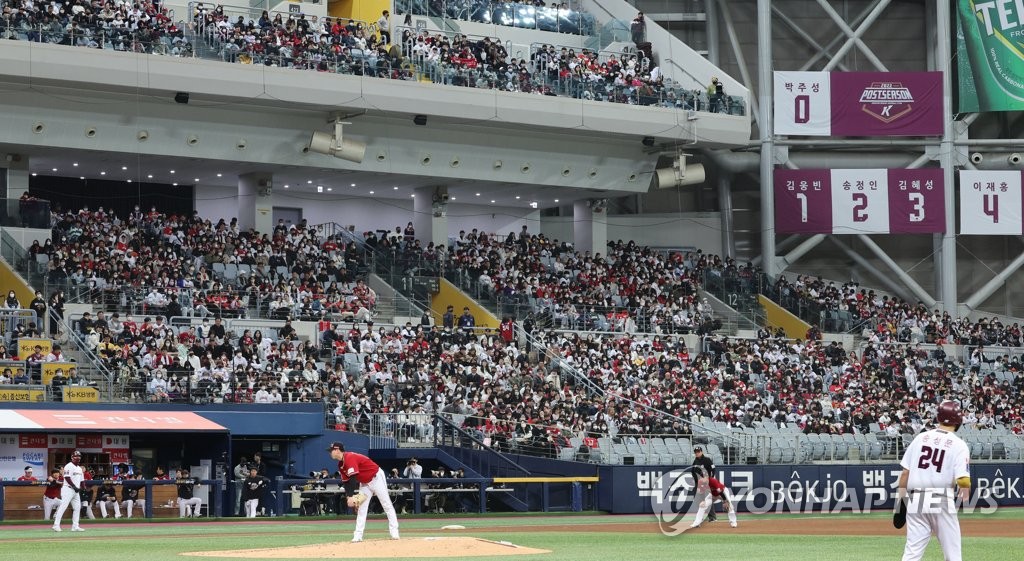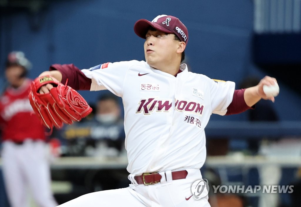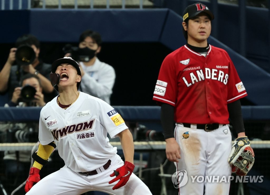 SEOUL, Nov. 5 (Yonhap) -- Riding a big inning and a surprising performance from their emergency starter, the Kiwoom Heroes defeated the SSG Landers 6-3 to draw even in the South Korean baseball championship round.