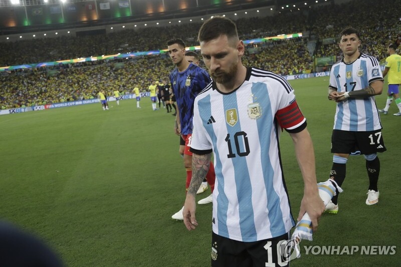 (서울=연합뉴스) 최송아 기자 = 남미 축구 '양대 산맥'인 아르헨티나와 브라질의 2026 북중미 월드컵 예선 맞대결이 관중 소요로 지연되는 우여곡절 끝에 열린 가운데 아르헨티나가 한 골 차 신승을 거뒀다.