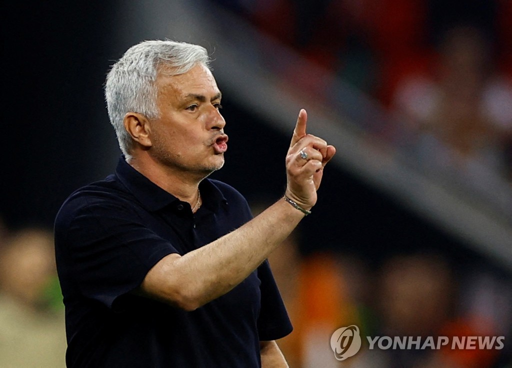 | ▲ This May 31, 2023, file photo by Reuters shows AS Roma head coach Jose Mourinho during a Europa League final match against Sevilla at Puskas Arena in Budapest. (Yonhap) |