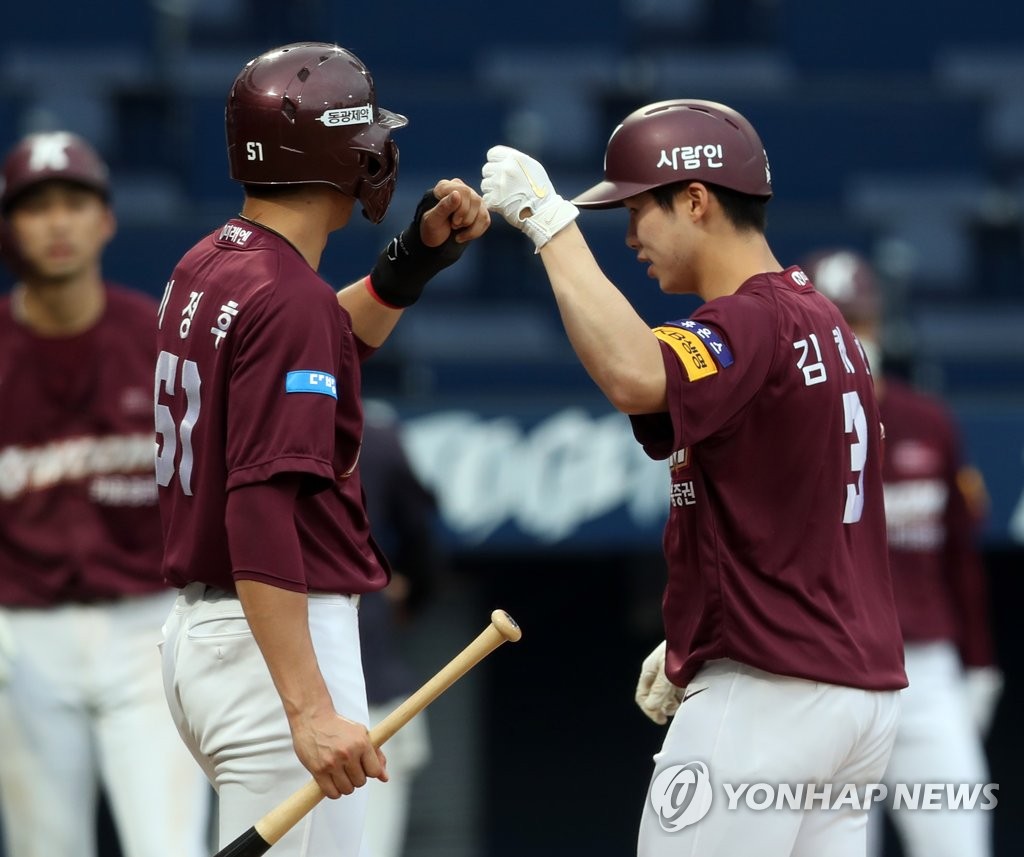 | ▲ '제가 끝냈습니다' (서울=연합뉴스) 김주성 기자 = 7일 오후 서울 구로구 고척스카이돔에서 열린 프로야구 2024 KBO리그 한화 이글스 대 키움 히어로즈의 경기. 키움 김혜성이 연장 11회말 무사에 끝내기 홈런을 친 뒤 환호하고 있다. 2024.4.7 utzza@yna.co.kr |