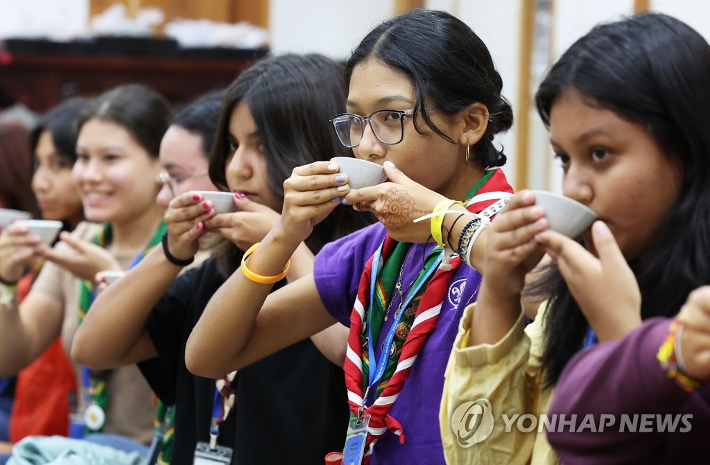 | ▲ 다도 체험해요 (수원=연합뉴스) 홍기원 기자 = 2023 새만금 세계 스카우트 잼버리에서 조기 퇴영한 볼리비아 스카우트 대원들이 10일 경기도 수원시 팔달구 수원전통문화관 예절교육관에서 다도 체험을 하고 있다. 2023.8.10 xanadu@yna.co.kr |